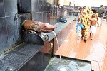 At the foot of Vaibhava Hill, a staircase leads up to the various temples. Separate bathing places have been organized for men and women and the water comes through spouts from Saptdhara, the seven streams, believed to find their source behind the "Saptarni Caves", up in the hills. The hottest of the springs is the Brahmakund with a temperature of 45 degree Centigrade.