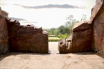 The Chariot Route and hell inscriptions are worth a visit for the strangeness of the phenomenon, two parallel furrows cut deep into rock for about thirty feet giving credence to the local belief that they were "burnt" into the rock by the speed and power of Lord Krishna's chariot when he entered the city of Rajgir during the epic Mahabharata times. Several shell inscriptions, the undeciphered characters current in central and eastern India from the 1st to 5th centuries AD, and engraved in the rock around the chariot marks.