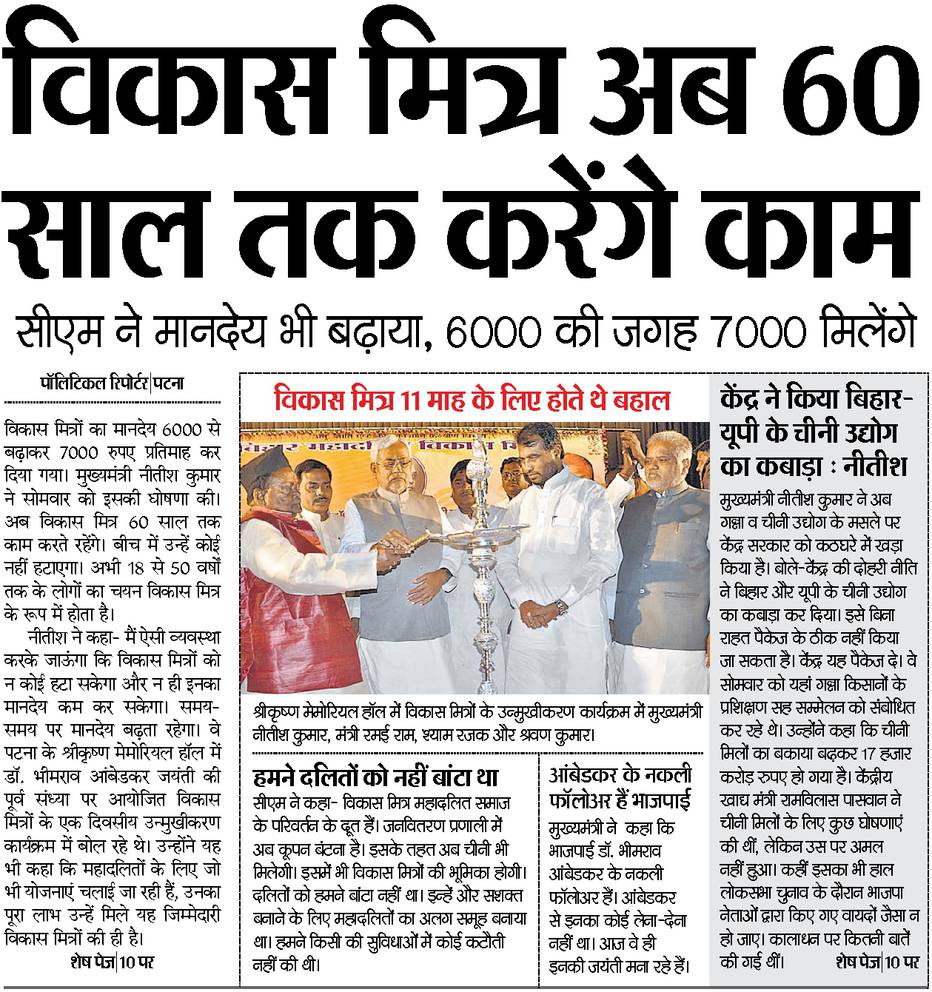 विकास मित्र अब 60 साल तक करेंगे काम ।